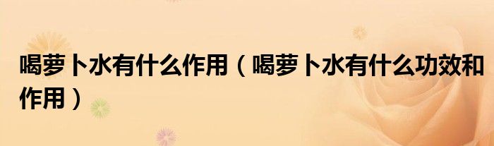 导读 大家好,linda来为大家解答以上的问题。喝萝卜水有什么作用,喝萝卜水有什么功效和作用很多人还不知道,现在让我们一起来看看吧!1、喝萝卜