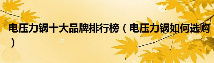 电压力锅十大品牌排行榜(电压力锅如何选购)