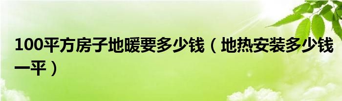 100平方房子地暖要多少钱(地热安装多少钱一平)
