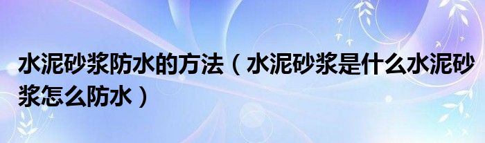 水泥砂浆防水的方法(水泥砂浆是什么水泥砂浆怎么防水)