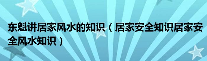 东魁讲居家风水的知识(居家安全知识居家安全风水知识)