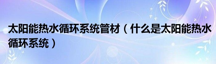 太阳能热水循环系统管材(什么是太阳能热水循环系统)