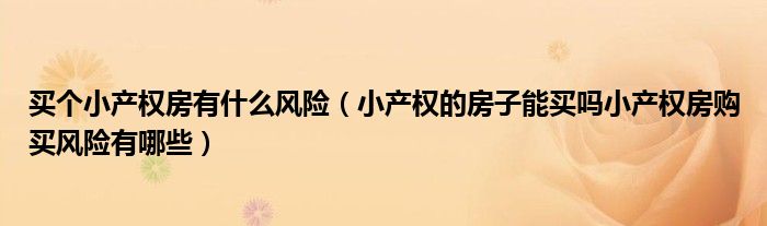 买个小产权房有什么风险(小产权的房子能买吗小产权房购买风险有哪些)