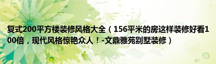 复式200平方楼装修风格大全(156平米的房这样装修好看100倍,现代风格惊艳众人!-文鼎雅苑别墅装修)