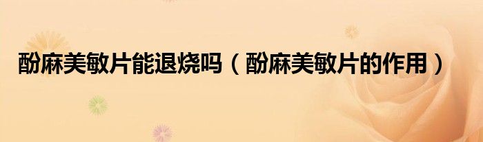 酚麻美敏片能退烧吗(酚麻美敏片的作用)