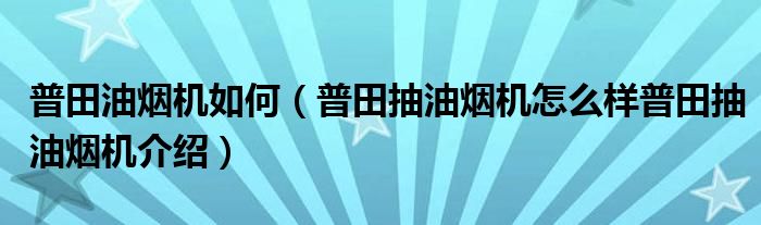 普田油烟机如何(普田抽油烟机怎么样普田抽油烟机介绍)