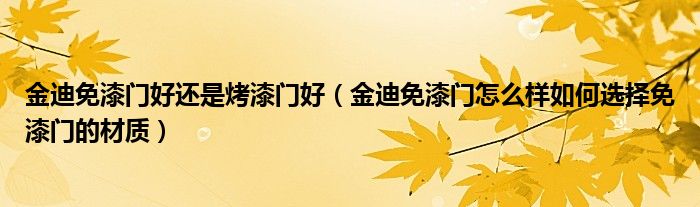 导读 大家好,今天乐乐来为大家解答以上问题。金迪免漆门好还是烤漆门好,金迪免漆门怎么样如何选择免漆门的材质很多人还不知道,现在让我们一起