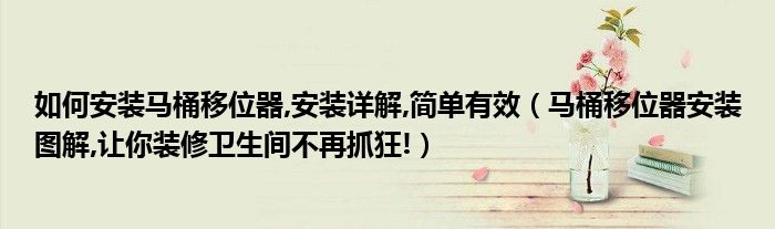 如何安装马桶移位器,安装详解,简单有效(马桶移位器安装图解,让你装修卫生间不再抓狂!)