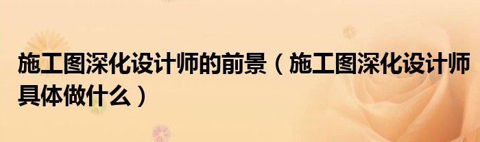 施工图深化设计师的前景(施工图深化设计师具体做什么)