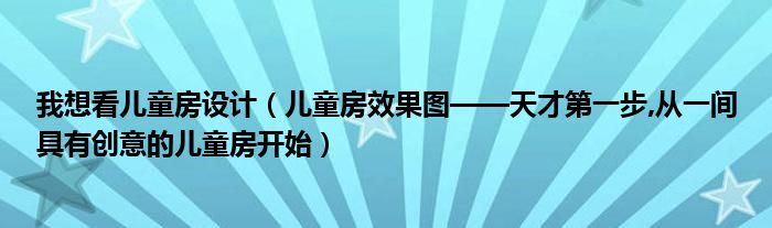 大家好,今天乐乐来为大家解答以上问题。我想看儿童房设计,儿童房效果图——天才第一步,从一间具有创意的儿童房开始很多人还不知道,现在让我们一起来看看吧!
