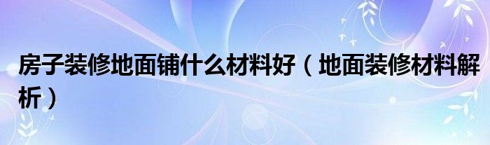 大家好,今天乐乐来为大家解答以上问题。房子装修地面铺什么材料好,地面装修材料解析很多人还不知道,现在让我们一起来看看吧!