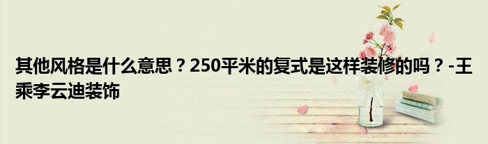 大家好,今天乐乐来为大家解答以上问题。其他风格是什么意思?250平米的复式是这样装修的吗?-王乘李云迪装饰很多人还不知道,现在让我们一起来看看吧!