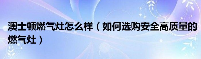 澳士顿燃气灶怎么样(如何选购安全高质量的燃气灶)