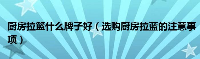厨房拉篮什么牌子好(选购厨房拉蓝的注意事项)