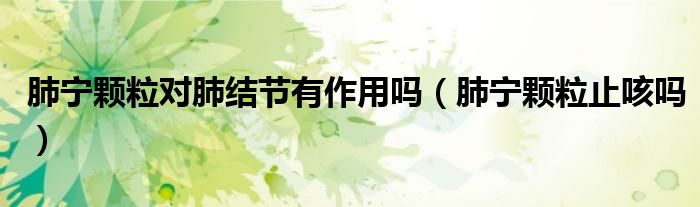 肺宁颗粒对肺结节有作用吗(肺宁颗粒止咳吗)