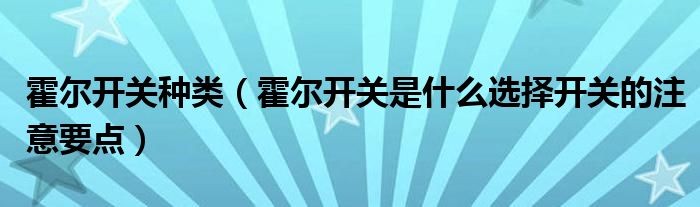 霍尔开关种类(霍尔开关是什么选择开关的注意要点)
