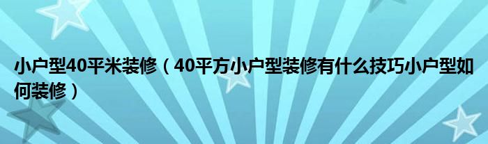 小户型40平米装修(40平方小户型装修有什么技巧小户型如何装修)