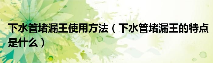 下水管堵漏王使用方法(下水管堵漏王的特点是什么)