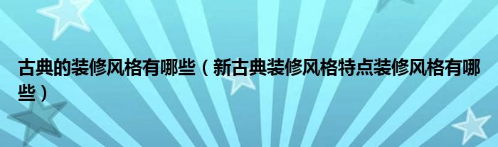 古典的装修风格有哪些(新古典装修风格特点装修风格有哪些)