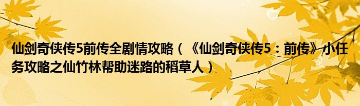 导读 大家好,太太来为大家解答以上问题。仙剑奇侠传5前传全剧情攻略,《仙剑奇侠传5:前传》小任务攻略之仙竹林帮助迷路的稻草人很多人还不知道