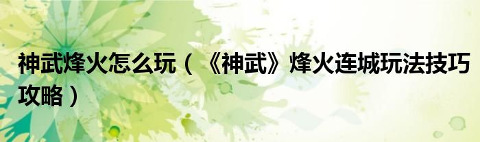 大家好,太太来为大家解答以上问题。神武烽火怎么玩,《神武》烽火连城玩法技巧攻略很多人还不知道,现在让我们一起来看看吧!