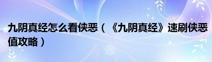 九阴真经怎么看侠恶(《九阴真经》速刷侠恶值攻略)