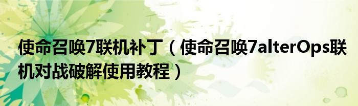 导读 大家好,太太来为大家解答以上问题。使命召唤7联机补丁,使命召唤7alterOps联机对战破解使用教程很多人还不知道,现在让我们一起来看看吧!
