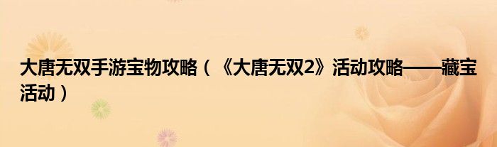 大唐无双手游宝物攻略(《大唐无双2》活动攻略——藏宝活动)
