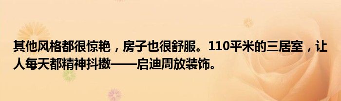 导读 大家好,今天乐乐来为大家解答以上问题。其他风格都很惊艳,房子也很舒服。110平米的三居室,让人每天都精神抖擞——启迪周放装饰。很多人
