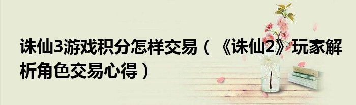 诛仙3游戏积分怎样交易(《诛仙2》玩家解析角色交易心得)