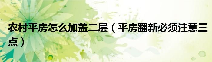 农村平房怎么加盖二层(平房翻新必须注意三点)