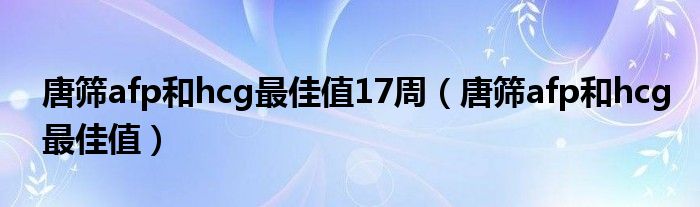唐筛afp和hcg最佳值17周(唐筛afp和hcg最佳值)