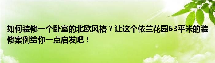 如何装修一个卧室的北欧风格?让这个依兰花园63平米的装修案例给你一点启发吧!