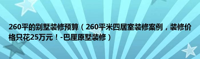 260平的别墅装修预算(260平米四居室装修案例,装修价格只花25万元!-巴厘原墅装修)