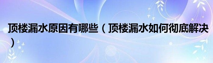 顶楼漏水原因有哪些(顶楼漏水如何彻底解决)