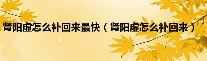 肾阳虚怎么补回来最快(肾阳虚怎么补回来)