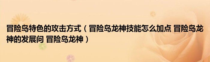 冒险岛特色的攻击方式(冒险岛龙神技能怎么加点 冒险岛龙神的发展问 冒险岛龙神)