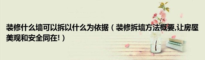装修什么墙可以拆以什么为依据(装修拆墙方法概要,让房屋美观和安全同在!)