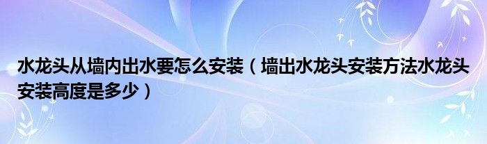 水龙头从墙内出水要怎么安装(墙出水龙头安装方法水龙头安装高度是多少)