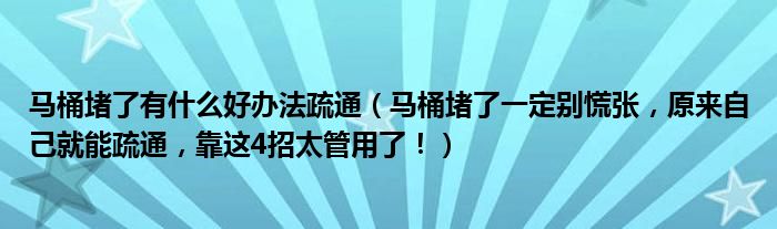 马桶堵了有什么好办法疏通(马桶堵了一定别慌张,原来自己就能疏通,靠这4招太管用了!)