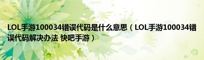 LOL手游100034错误代码是什么意思(LOL手游100034错误代码解决办法 快吧手游)