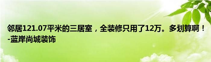 导读 大家好,今天乐乐来为大家解答以上问题。邻居121 07平米的三居室,全装修只用了12万。多划算啊!-蓝岸尚城装饰很多人还不知道,现在让我们