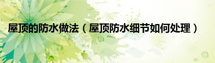 屋顶的防水做法(屋顶防水细节如何处理)