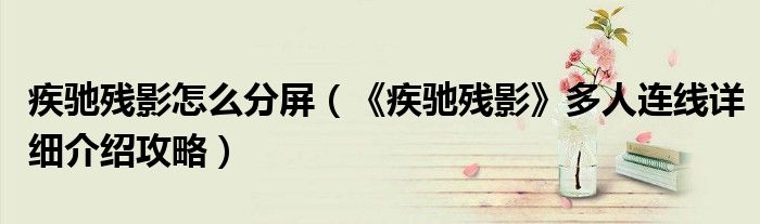 疾驰残影怎么分屏(《疾驰残影》多人连线详细介绍攻略)