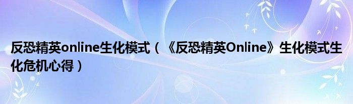 反恐精英online生化模式(《反恐精英Online》生化模式生化危机心得)