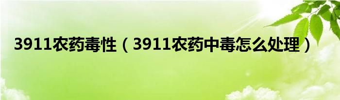 大家好,linda来为大家解答以上的问题。3911农药毒性,3911农药中毒怎么处理很多人还不知道,现在让我们一起来看看吧!