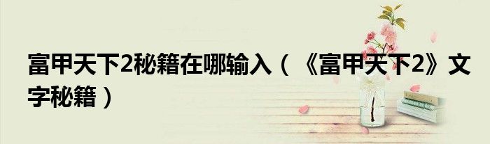 富甲天下2秘籍在哪输入(《富甲天下2》文字秘籍)
