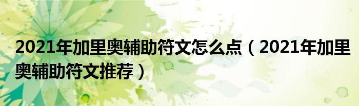 2021年加里奥辅助符文怎么点(2021年加里奥辅助符文推荐)
