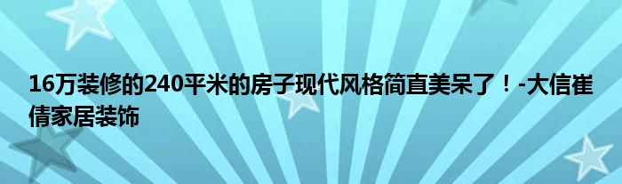 导读 大家好,今天乐乐来为大家解答以上问题。16万装修的240平米的房子现代风格简直美呆了!-大信崔倩家居装饰很多人还不知道,现在让我们一起来