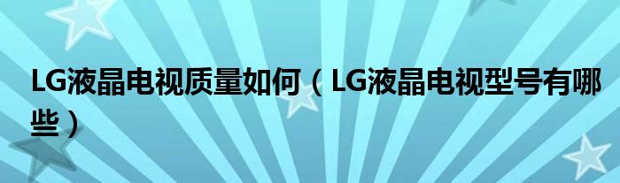 大家好,今天乐乐来为大家解答以上问题。LG液晶电视质量如何,LG液晶电视型号有哪些很多人还不知道,现在让我们一起来看看吧!